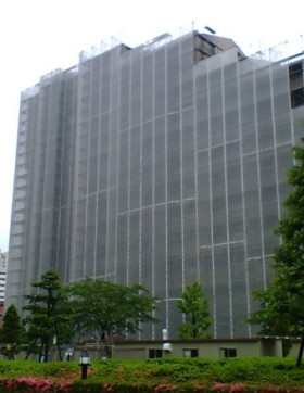 こんな風にマンション全体が白い布で覆われているので、お天気の良し悪しも