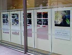 ↑パネル展は、1階正面ドアを入ってすぐの受付前スペースで行なわれています。