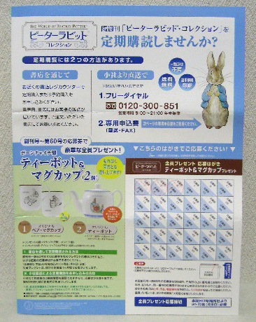 昨年、6号までのテスト販売があったディアゴスティーニのピーターラビット・コレクション。